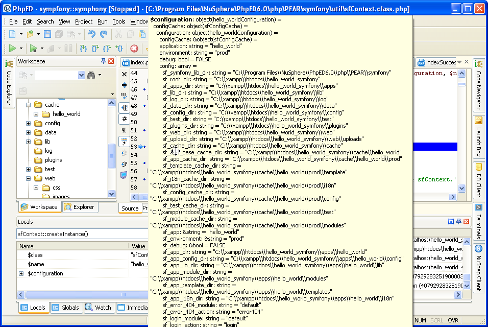 Previously we published an article about the use of PHP editor for building Web Applications with PHP, JSON and JavaScript. In this tutorial we will look at using PhpED - PHP Editor from NuSphere (http://www.nusphere.com/products/phped.htm) to develop PHP applications based on Symfony (ttp://www.symfony-project.org) - one of the most popular PHP frameworks. This tutorial assumes some familiarity with Symfony and will focus on getting the most out of PHP Editor used to develop Symfony application. Specifically we will look into getting Syntax Color highlighting, Code insight and PHP Debugger to work with Symfony.